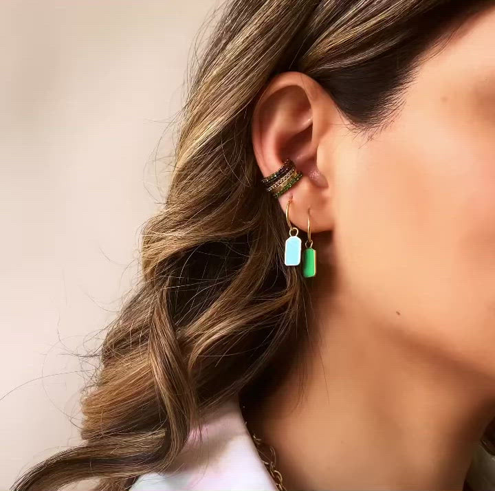 Green Enamel Tag Mini Hoop