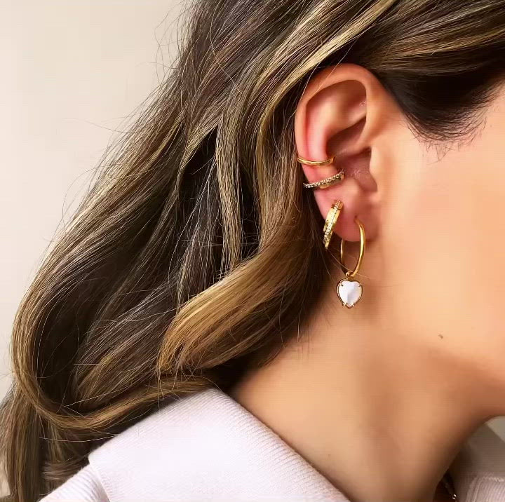 - Handmade from 18k yellow gold with mother of pearl in shape of a heart