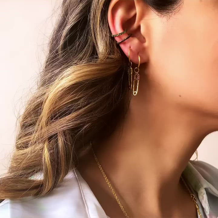 Tsavorite Safety Pin Mini Hoop